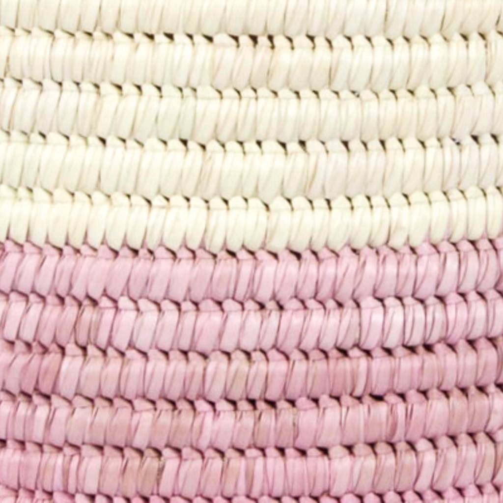 These beautiful colour block yoga baskets are woven from doum palm leaf in Uganda and boast a broad, raspberry pink band to the lower section.